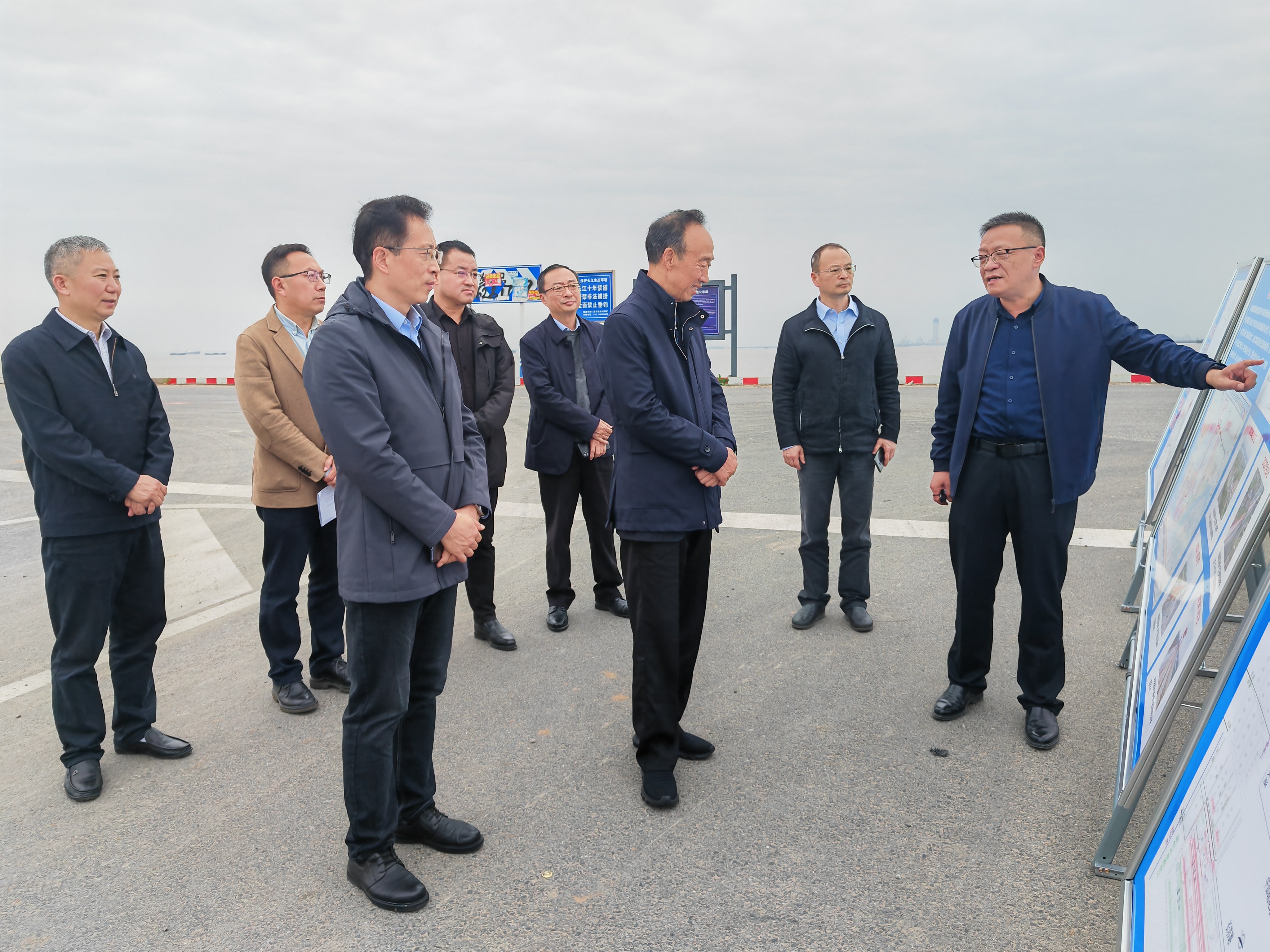 11月25日,江蘇省政協原副主席范燕青等一行調研南通港通海港區至通州灣港區鐵路專用線一期工程,省鐵運營公司黨委書記、董事長趙瑋,副總經理戴欣,南通港(港口)集團副董事長崔劍,通海鐵路公司黨支部書記、董事長顧焱華,總經理鎮杰,黨支部副書記邵仲華,新江海公司黨支部書記、副董事長陸朝暉等陪同調研,圖為通海鐵路公司負責人介紹工程項目基本概況、區位優勢、發展定位及建設進展等相關情況。