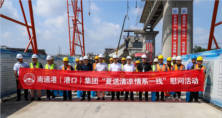 隨后,劉建一行趕到呂四“2+2”碼頭,為一線職工送去了防暑降溫物品。在慰問現場,職工們深受鼓舞,紛紛表示將克服高溫困難,堅守崗位,發揚通港人特別能吃苦、特別能戰斗的拼搏精神,為南通港“優江拓海 江海聯動”發展作出應有的貢獻。